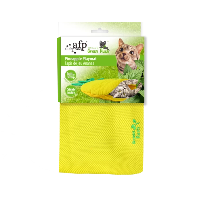 Laat uw kat naar hartenlust met deze leuke AFP Green Rush – Play Mat! Deze speelmat behoort tot de Green Rush-collectie van AFP Paws en is, dankzij de speelse vorm van een aardbei of een ananas, een aanvulling op uw interieur. Dankzij de toevoeging van Catnip is de speelmat onweerstaanbaar voor uw kat en het leuke crinkle-geluid vergroot de interesse. De ananas is bovendien voorzien van een dubbele laag, waardoor uw kat hier heerlijk in kan kruipen. De AFP Green Rush – Play Mat is gemakkelijk opvouwbaar en bovendien voorzien van een handig hengsel!