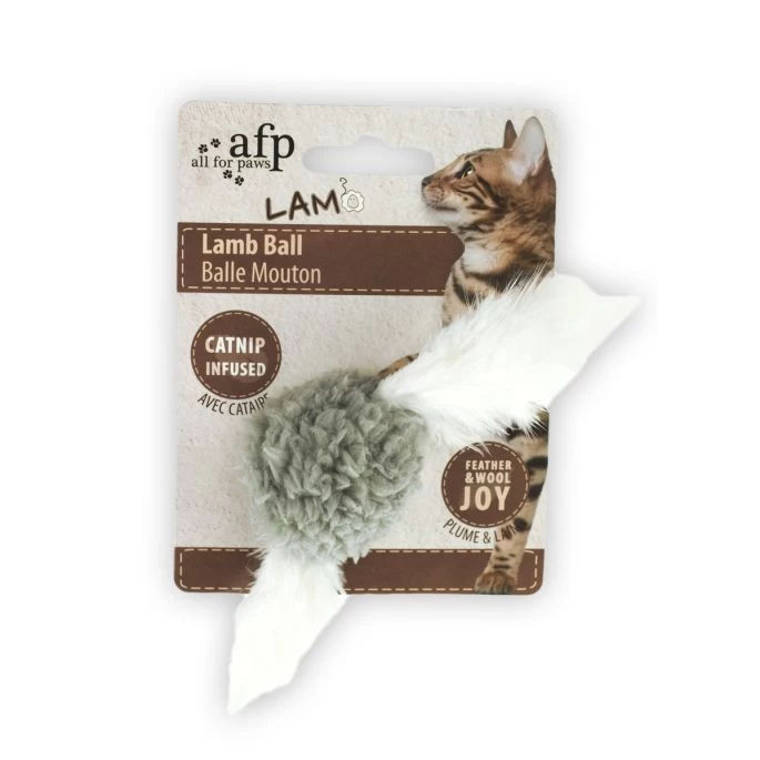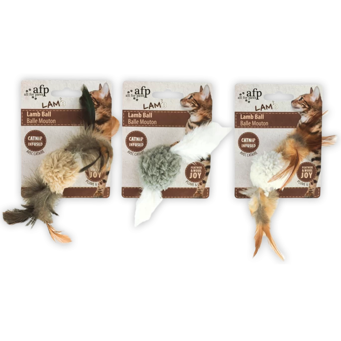 Inclusief 2 veren, Catnip en bij beweging maakt de Lamb Ball het geluid van een vogel!