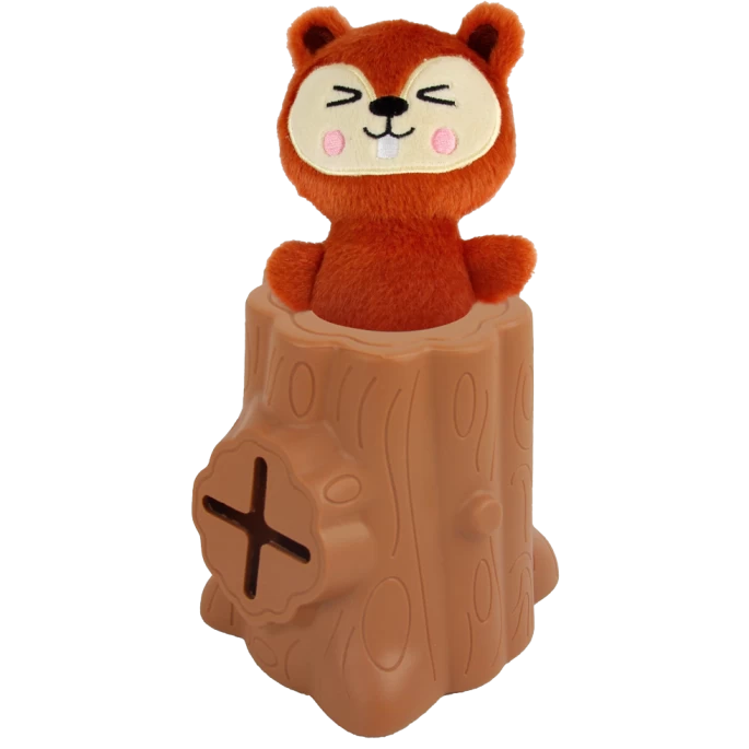 Rubberen speeltje met knuffeltje. In het rubber kunnen traktaties worden verstopt. Dit zorgt voor mentale uitdaging en nog meer speelplezier.