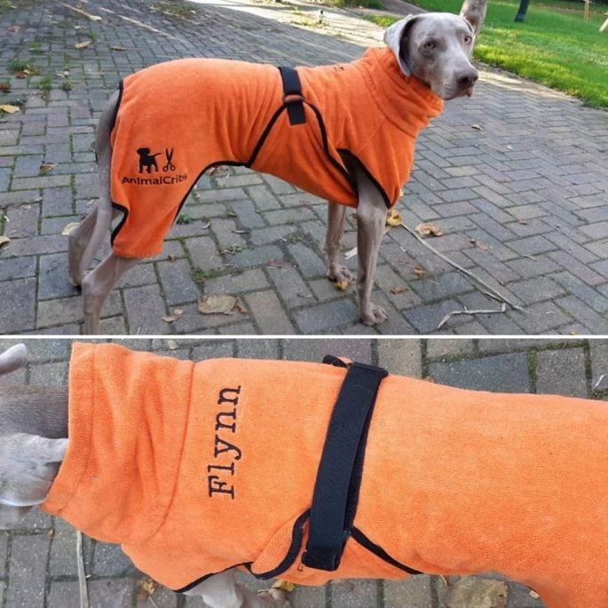 Hoe leuk is het om de naam van uw hond op de badjas te laten borduren? Een unieke badjas speciaal voor uw hond!