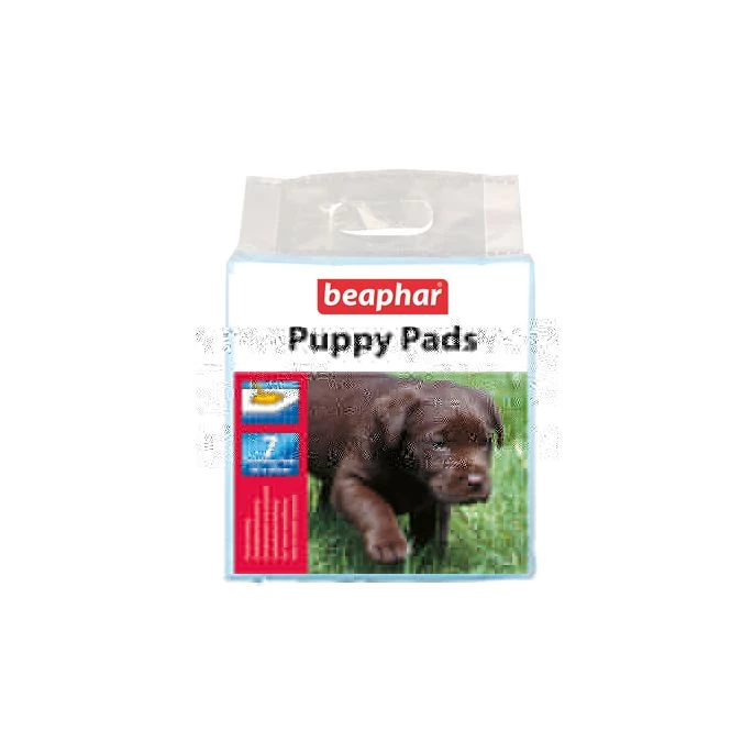 Puppy Pads zijn trainingsmatten bedoeld om puppy’s te leren hun behoefte te doen op een plaats waar u dat wilt. Plaats de mat op een vaste plaats. Om deze vaste plek makkelijker te vinden voor uw puppy kunt u Beaphar Puppy Trainer op de mat druppelen. De trainingsmat absorbeert vocht en houdt de omgeving droog en schoon. U kunt de trainingsmat natuurlijk ook gebruiken als ondergrond bij voeder- en drinkbakken of wanneer uw hond of kat haar nest werpt.Samenstelling: