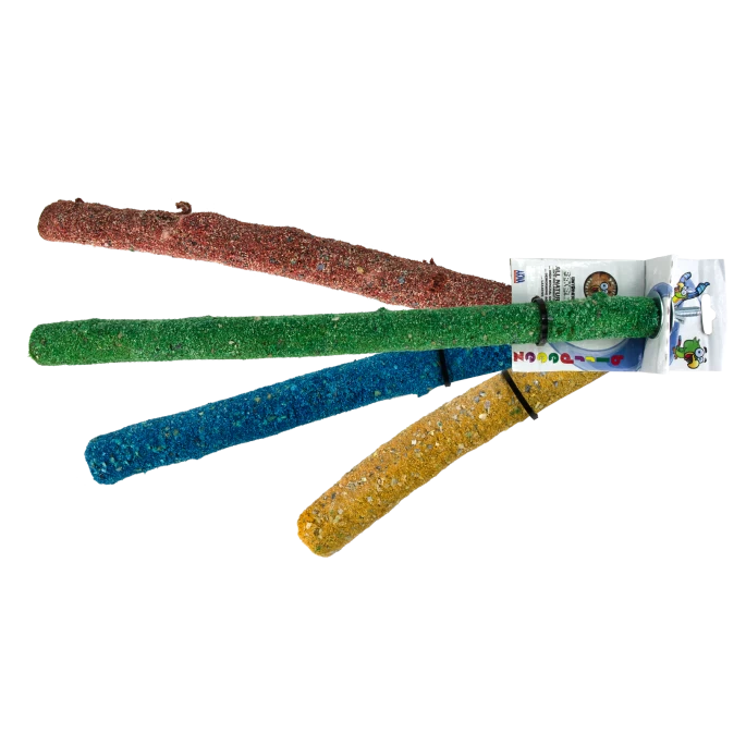 Zitstok met zandstructuur voor grote vogels. Draagt bij aan het onderhoud van de pootjes en snavel van uw vogel. Makkelijk te monteren met behulp van de eenvoudige vleugelmoerbevestiging. Plaats de zitstok in de kooi, de papegaai of ara doet het werk. Voor een optimaal onderhoud van pootjes en snavel, de zitstok niet reinigen.