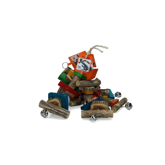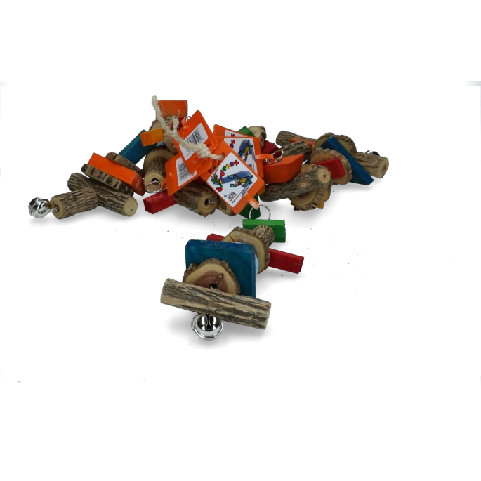 Vrolijk de kooi van uw vogel op met deze kleurrijke vogelspeeltjes. Deze set bestaat uit 6 verschillende speeltjes. Met belletjes, vrolijk gekleurde stukjes hout en mineralen. Leuk om mee af te wisselen of aan te vullen.