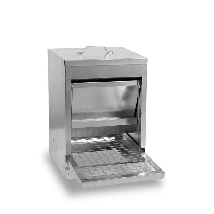 Voersilo Metaal Pedaal Rooster. 5kg. Maat Ø 28cm.x 38.5H
