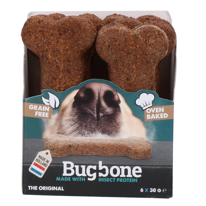 Bugbone helpt ook nog eens het gebit van je hond te reinigen en zorgt voor een frisse adem. De kans op allergische reacties is nihil en daardoor is de snack ook uitermate geschikt voor allergiegevoelige honden. In combinatie met het lage aantal calorieën (slechts 157 kcal per 100 gram) is de Bugbone dé ultieme traktatie voor iedere hond.