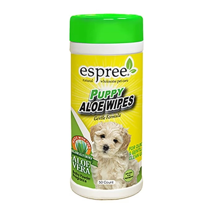 Milde, hypo-allergene natte doekjes die gegarandeerd veilig is voor de gevoelige huid van dieren zoals pups en kittens. Maak de pups zonder te wassen schoon en veeg gemakkelijk overige papvlekken, vieze kont of vieze ogen weg met deze heerlijk ruikende wipes. De doekjes ruiken naar baby-talkpoeder en passen daarom ideaal bij de Puppy & Kitten shampoo en de Puppy & Kitten cologne.