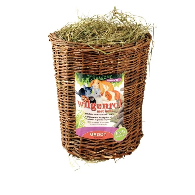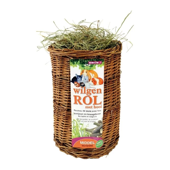 De ESVE Wilgenrollen zijn de ideale combinatie tussen knaag en speelplaats voor uw knaagdier of konijn. De wilgenrol is een 100% natuurlijke rol van wilgenhout volledig gevuld met bergweidehooi. De wilgenrollen zijn verkrijgbaar in 3 maten.