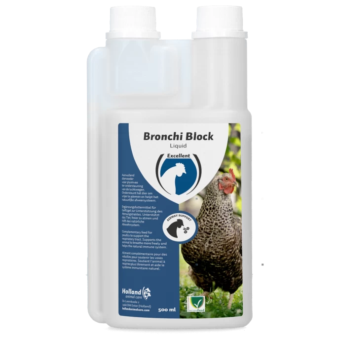 Bronchi Block vloeibaar is een aanvullend diervoeder voor pluimvee.