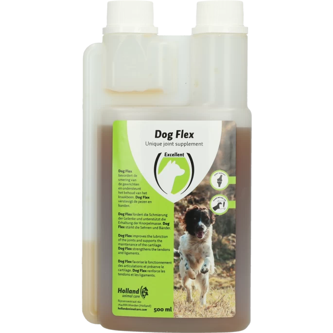 Dog Flex verstevigt de pezen, banden en ondersteunt het behoud van kraakbeen.