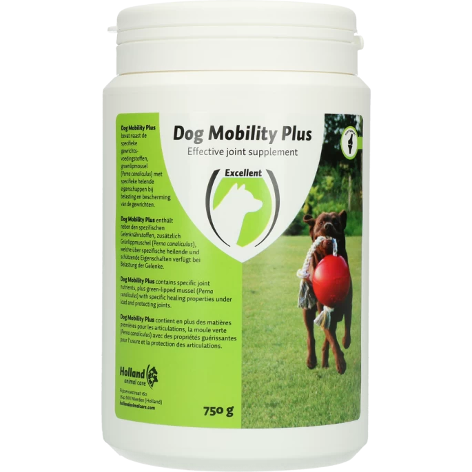 Dog Mobility Plus bevat naast deze specifieke gewrichtsvoedingsstoffen, groenlipmossel (Perna canaliculus) met specifieke eigenschappen bij belasting en bescherming van de gewrichten.