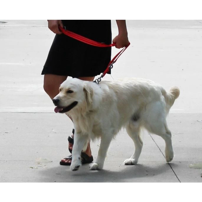 Deze nylon riem is eenvoudig aan te passen aan vijf verschillende lengtes, zodat u en uw hond zich kunnen aanpassen aan verschillende wandelomgevingen.