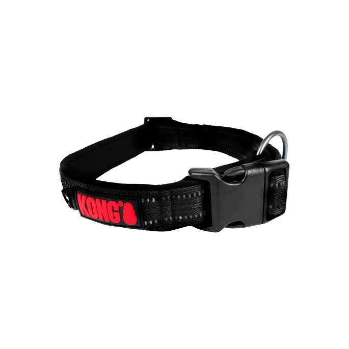 Halsband van hoge KONG-kwaliteit. Ideaal tijdens donkere dagen, want de halsband is reflecterend in het donker.