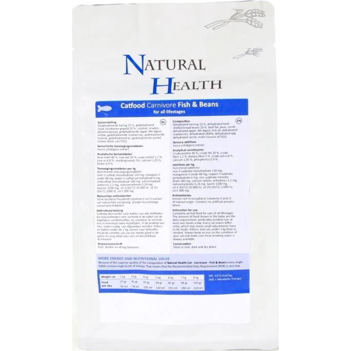 Artikelnummer: NH Cat Carnivore Fish&Beans Categorieën: Katten, Katten droogvoer, Kattenvoer en kattensnacks