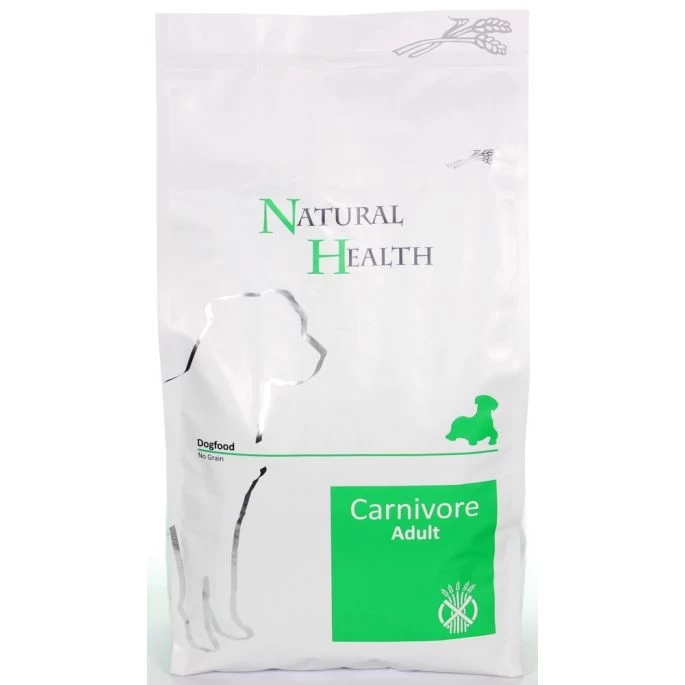 Natural Health Carnivore heeft een laag percentage zetmeel, een hoog percentage eiwit en is vrij van granen. Net als bij mensen, geeft een overvloed aan hoogcalorie koolhydraten een verhoogde kans op overgewicht, diabetes en een algehele lusteloosheid. Op dit moment hebben de meeste hondenvoeders nog steeds graan en graanbijproducten als basis van hun voeding.