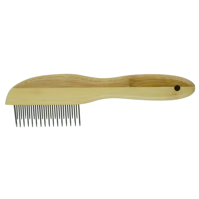 Verwijdert eenvoudig vlooien, vlooieneitjes en vlooienlarven uit de vacht. Deze kam wordt ook vaak gebruikt om vuil en rommel uit de vacht te verwijderen. Deze kammen hebben een glad handvat met prachtige hout structuur.
