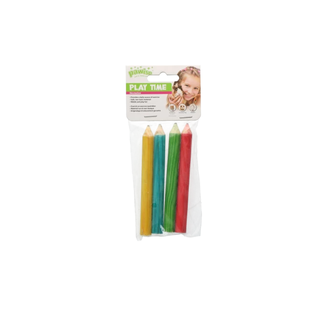 Deze houten potloodjes zien er niet alleen leuk uit, maar zijn heel geschikt om lekker aan te knagen en mee te spelen.