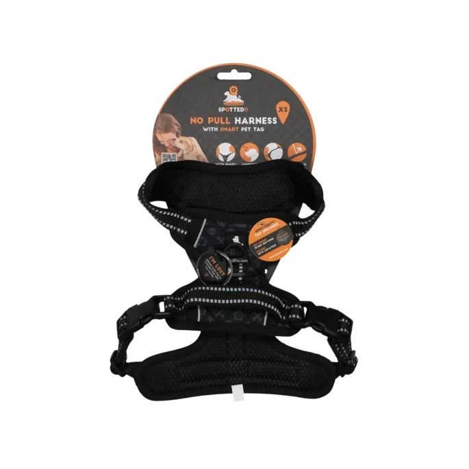 Dit harnas is uitgerust met de Spotted Pro Tag, een innovatief systeem voor hondenidentificatie. De Spotted Pro Tag is een digitale hondenpenning die eenvoudig te scannen is via een QR code of NFC chip. Met de gratis app kunt u alle gegevens van u en uw hond vermelden, zoals contactgegevens en informatie over uw hond. Wanneer uw hond wegloopt en gevonden wordt, krijgt u een melding dat de hond is gescand. De vinder krijgt dan de contactgegevens van u te zien en de informatie over uw hond die u wilt delen. Hierdoor kan de vinder contact met u opnemen en uw hond terugbrengen naar u.