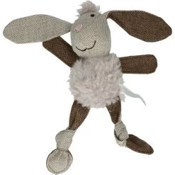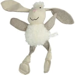 Dit knuffelkonijn is gemaakt van superzachte fleece en duurzaam en sterk canvas. Dubbel gestikt en met een pieper voor extra speelplezier. Met grote oren om mee te kunnen gooien en voor trek-spelletjes met uw hond. De benen zijn van geknoopt canvas en onderin de voeten zit nog een extra pieper.
